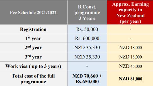 New Zealand provides 20hours of part-time work during studies and 2-3 months of full-time work during holidays. Assumption: $15NZD per hour earning capacity during studies.