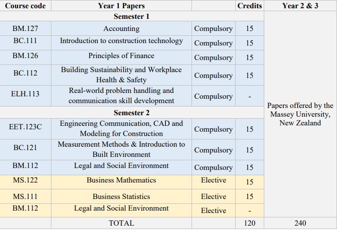 You can start Bachelor of Construction degree in Sri Lanka majoring Construction Management or Quantity Surveying. On Successful completion of GISM Diploma in Construction, students can transfer to second year of the Bachelor of Construction Degree programme at Massey University. At the end of the second and third years, Massey University offers the degree.